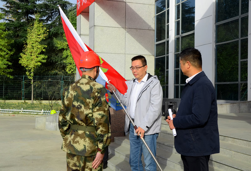 有限公司举行专职消防队授旗仪式,总经理谢飞为专职消防队授旗,并做重要讲话。